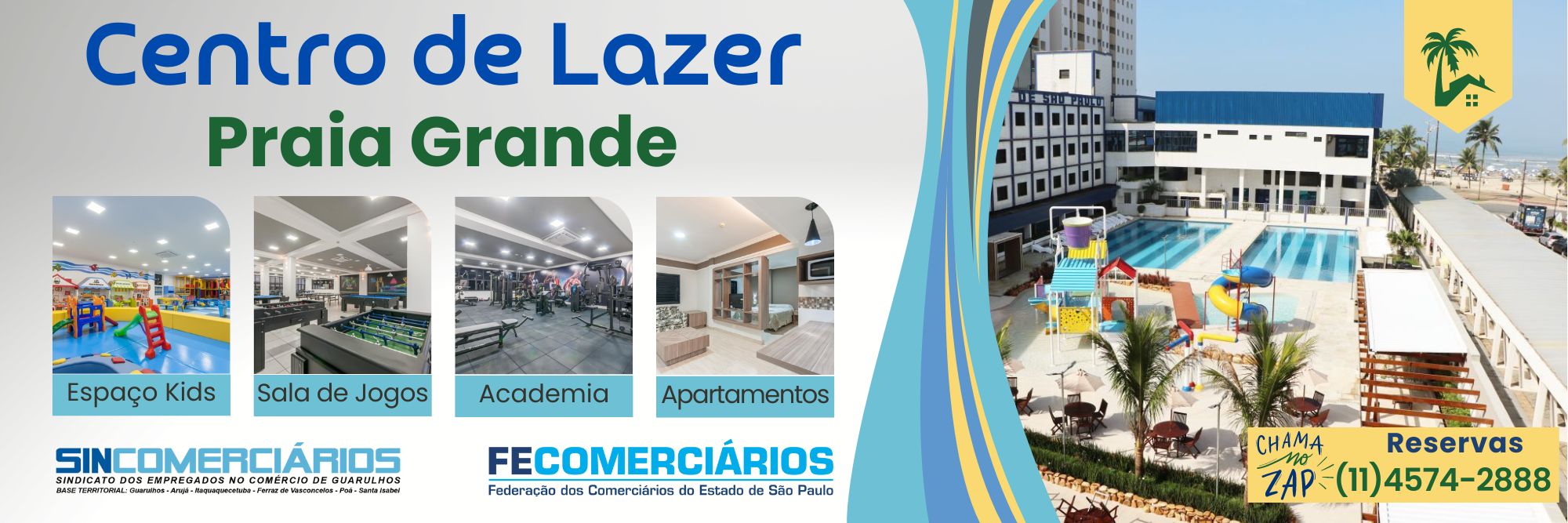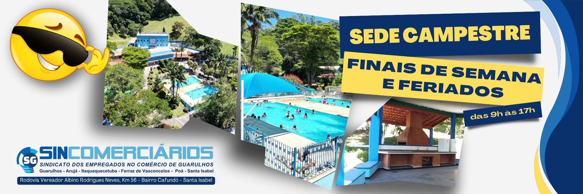 Sede Campestre e Pesqueiro com entrada gratuita para sócios e dependentes, além de preços diferenciados nos centros de lazer da Praia Grande e Avaré